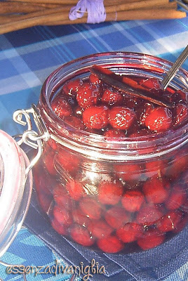 La frutta sotto spirito ci piace moltissimo! questa poi ha pure il tocco di cannella che rende il tutto ancora più dolce e profumato!