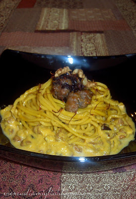 Splendido piatto tra salsicce, zafferano e quella salsina vellutata… grazie!