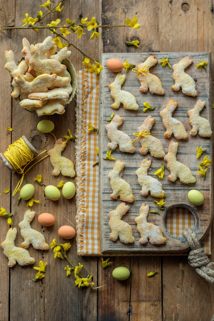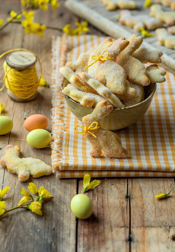 La particolarità di questi coniglietti, oltre a far impazzire grandi e piccini per la loro bontà, è la morbidezza del biscotto che si ottiene non solo grazie alla presenza del quark (nel mio caso la ricotta) nell’impasto, ma perché prima di essere infornati vengono spennellati di burro fuso. La stessa cosa viene fatta dopo la cottura, quando sono ancora caldi e poi si fanno rotolare nello zucchero.