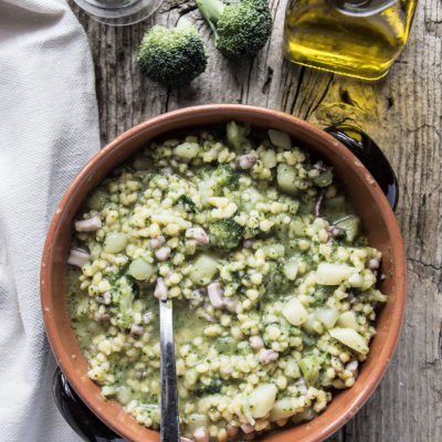 Oggi vorrei parlarvi di una zuppa che mi è piaciuta tantissimo, preparata, appunto, con soli tre ingredienti: dei calamaretti freschissimi trovati dal pescivendolo (provenienti non dall’Atlantico, ma dall’Adriatico!) e tagliati sottili sottili, delle cime di broccoli appena scottate in acqua bollente e qualche patata fatta a cubetti. Più precisamente questi sono gli ingredienti principali, poi ci sono quei piccoli accorgimenti che la rendono buonissima come l’aglio rosso (di Sulmona), un olio extravergine di oliva delle colline abruzzesi, del pepe nero schiacciato e tritato con il coltello, in modo che regali tutto il suo aroma ricco alla zuppa, e la scelta di una pasta eccellente realizzata con grani 100% italiani e come si faceva una volta: i grattini della Pasta di Camerino. Non so se avete mai avuto modo di assaggiare questo tipo di pasta, io la ricordo sin da piccola! Mia nonna la preparava quando faceva la fettuccine, lasciava sempre un po’ di impasto e lo grattugiava per il brodo o per la minestra. E la Pasta di Camerino è riuscita a riproporre nei suoi grattini quel sapore tanto che ad ogni cucchiaiata si rivive il sapore di tempi lontani, quando il gesto autentico e genuino delle nonne impastava questa fantastica pasta all’uovo.
